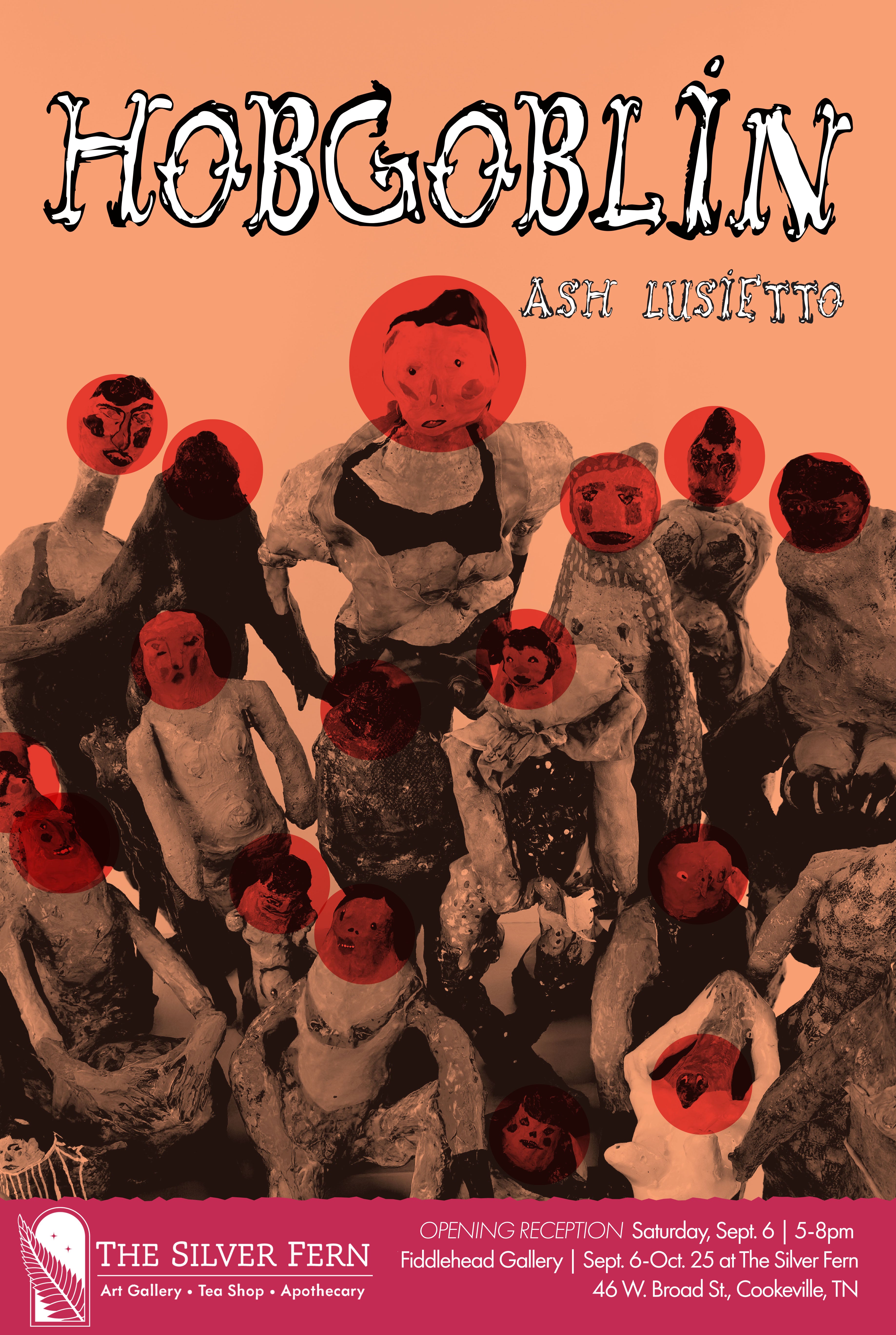 Hobgoblin, a solo exhibition by Ash Lusietto. “Hobgoblin is a mischievous assembly of likenesses—humans, animals, spirits—where resemblance is a form of magic and making is enchantment. Each handmade doll, mask, and creature conjures a presence, suggesting that something lives within.”